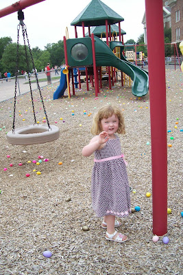 Finally it was time to hunt eggs. I snapped a quick pic while she was waiting in line to go outside. I love her REAL smile..rather then her forced smile that shows up sometimes in picutres.